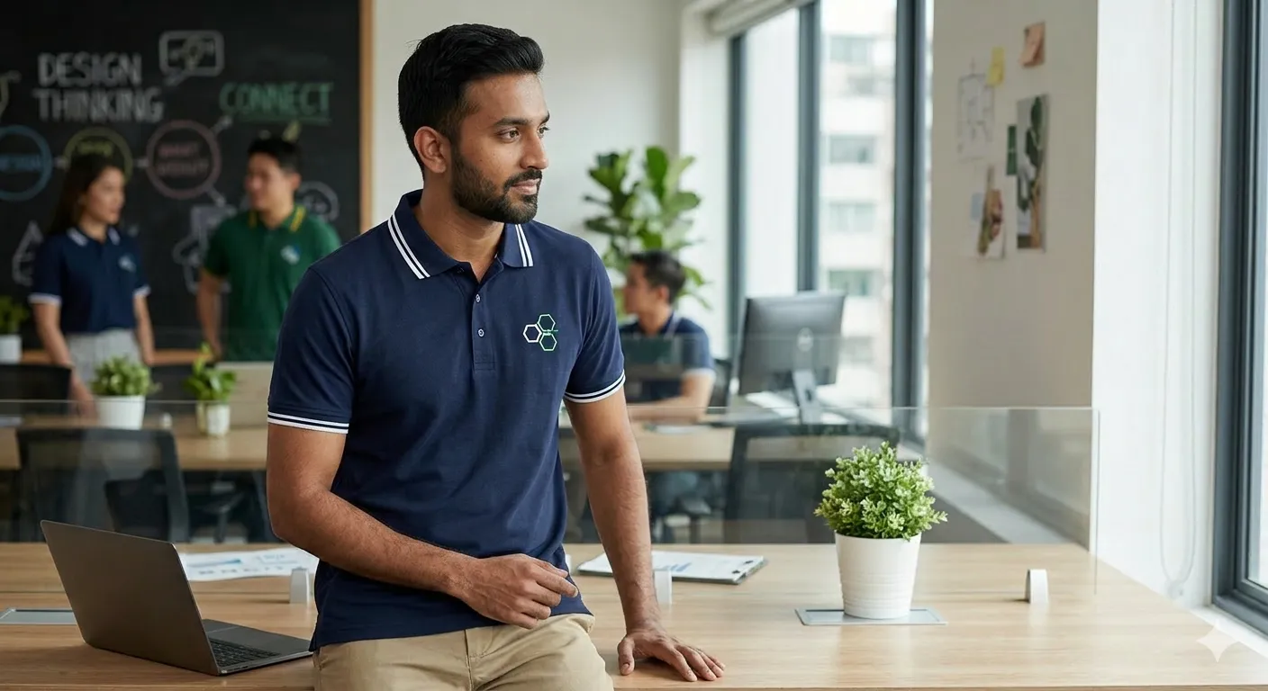 - Corporate & Professional Services (Law, Finance, Tech): Stick to high-end pique polo with a minimalist or subtly patterned texture look. Moreover, tonal embroidery is the gold standard for executive shirts.