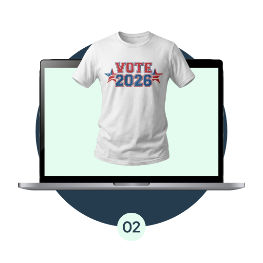 Upload your campaign logo and receive a free merchandise mockup within 24 hours — no commitment required.
