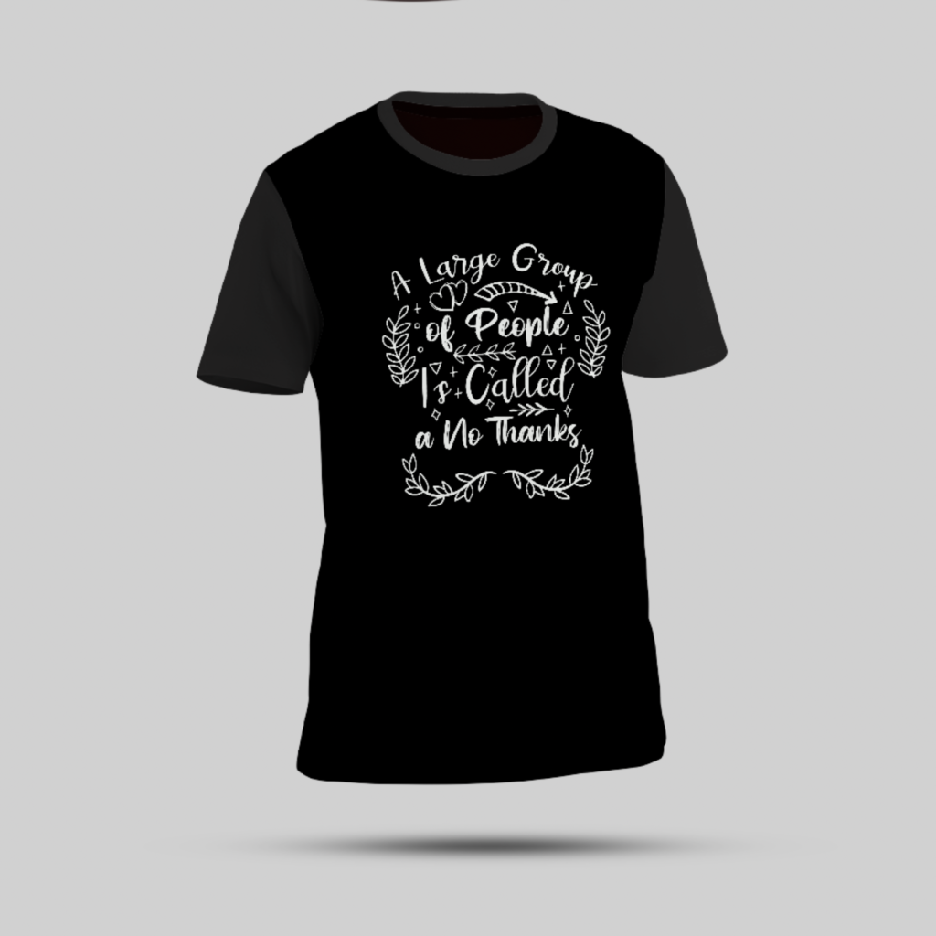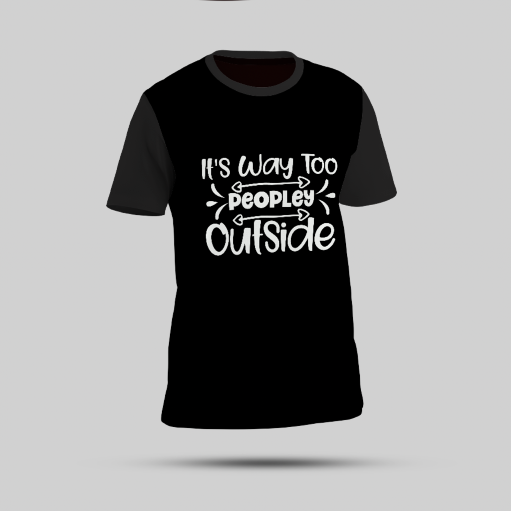 Express your introverted side in style with this black t-shirt featuring the bold and relatable phrase “It’s Way Too Peopley Outside.” Perfect for casual days and cozy vibes.