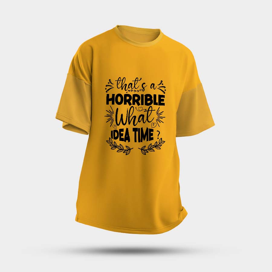 Multicolour Round Oversized T-Shirt with Bold “That’s a Horrible What Idea Time” Graphic
