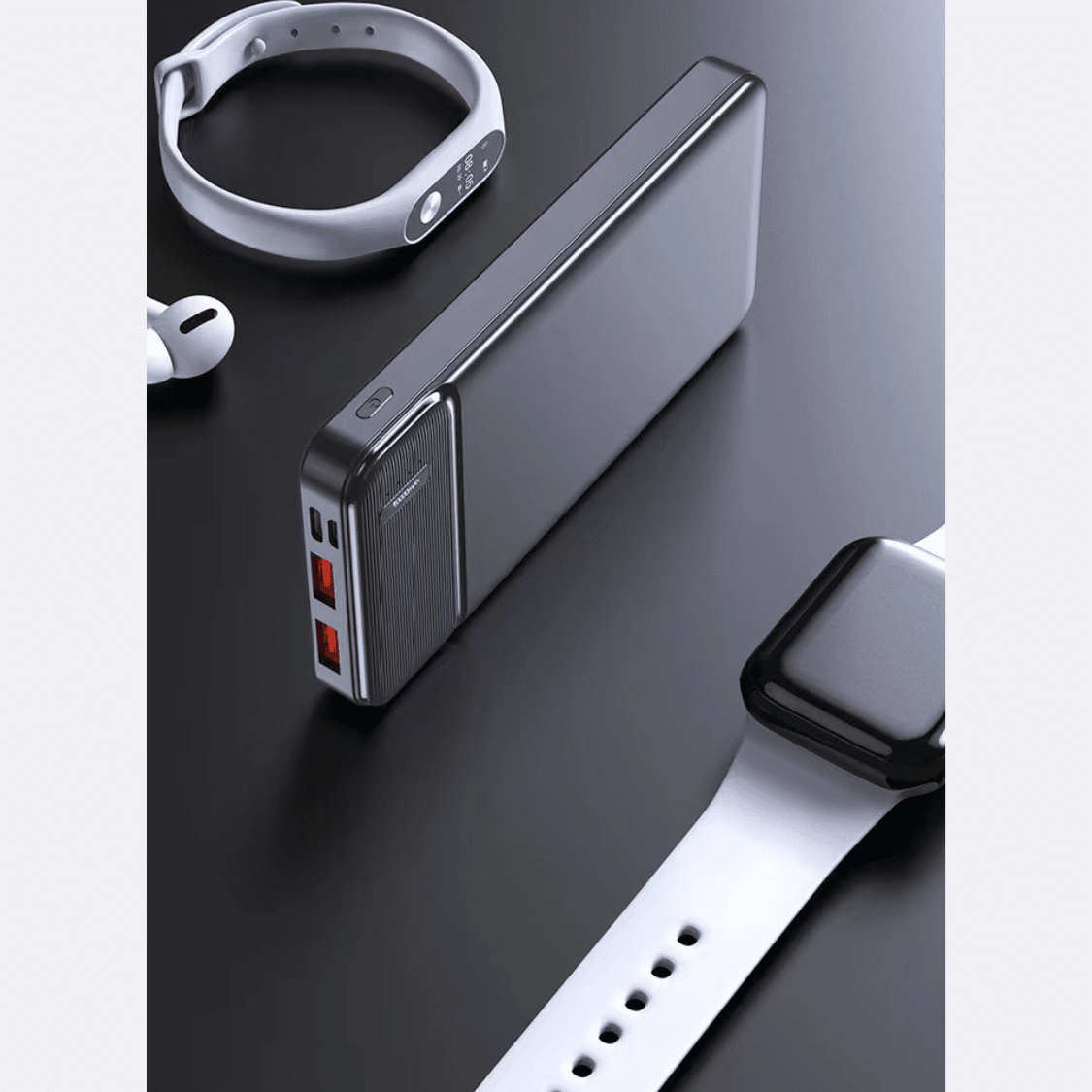 Crafted with a sleek, minimalistic finish, this powerbank easily fits into your bag, backpack, or pocket. Its lightweight build ensures convenient portability without adding bulk.