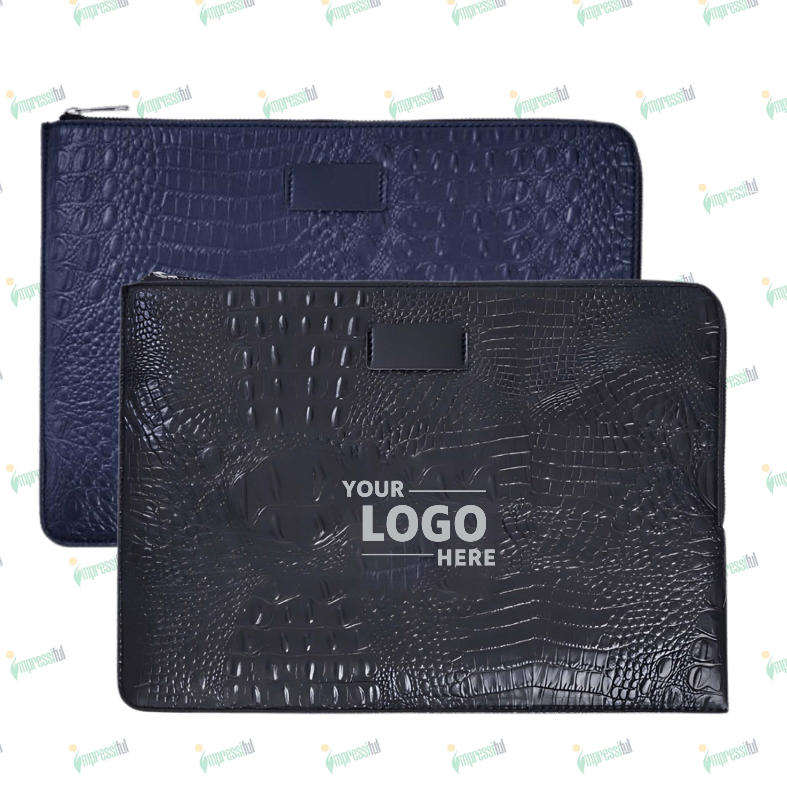 Protect your laptop in style with the Impressiful CrocSkin Laptop Sleeve. Featuring a luxurious crocodile-textured finish, soft interior lining, and custom branding options, it’s the perfect blend of sophistication and functionality.