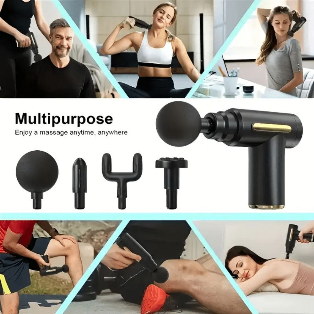 Equipped with multiple speed levels and interchangeable massage heads, it allows you to target various muscle groups — from shoulders and back to legs and arms — for a personalized recovery experience.