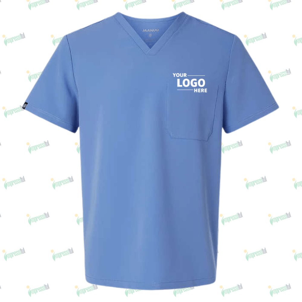 Effortlessly comfortable and professional, this scrub top is an everyday essential! The customizable Jaanuu Holmes Everyday One-Pocket V-Neck Scrub Top features a sleek V-neck design, a single chest pocket, and soft, antimicrobial fabric for all-day comfort. Perfect for healthcare workers on the go. Looking to embroider this scrub top?