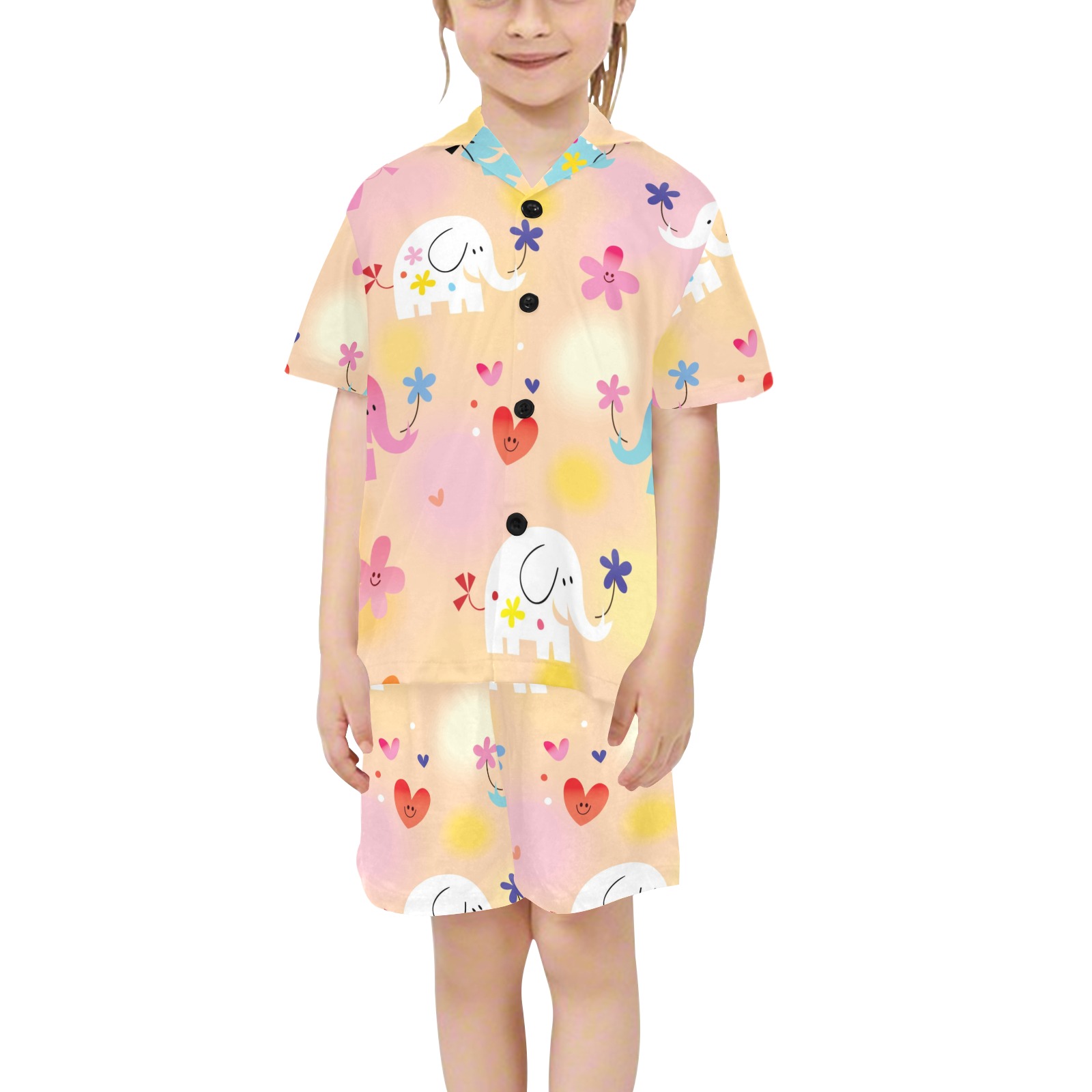 Shop the Little Girls’ V-Neck Short Pajama Set (Sets 11) for ultimate comfort and cuteness. Made with breathable fabric, it features a V-neck top and elastic-waist shorts in playful designs, perfect for sleep and lounging.