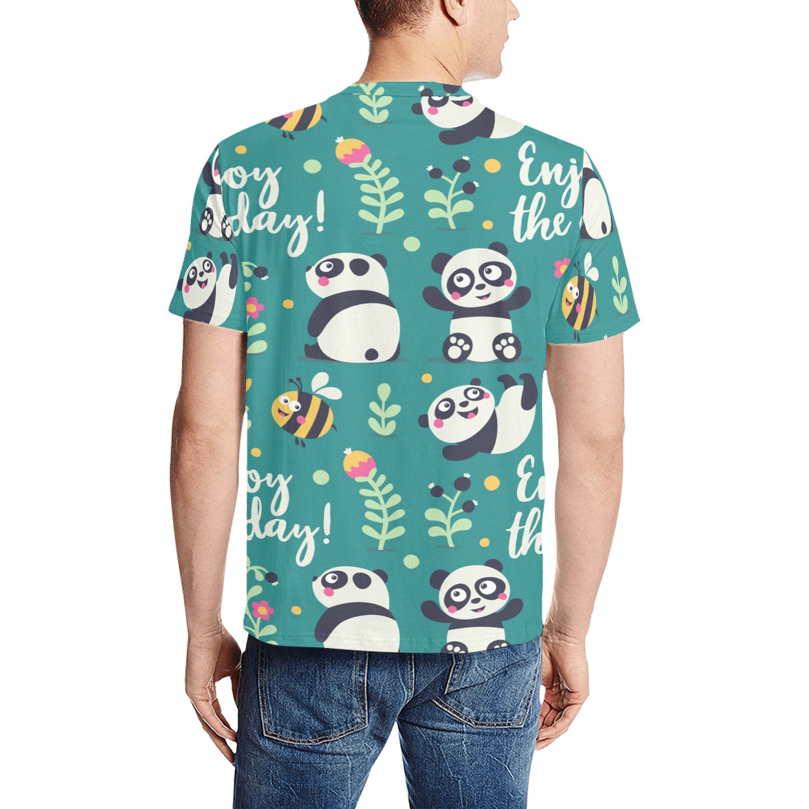 Product description: 100% Polyester. Personalized all-over print T-shirt for men. Lightweight and breathable fabric for a comfortable fit. Round neck and short sleeves finished. Easy to clean and dry. Wash with like color. Each panel is cut and sewn together to ensure a flawless graphic.