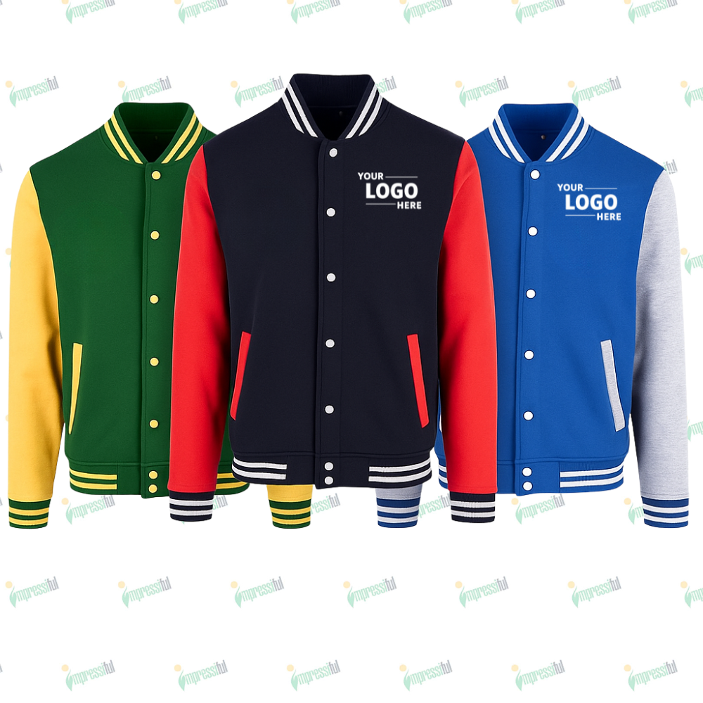 Capture the school spirit and swag with our Custom Varsity Jackets, also known as Senior Leaver Jackets or Lettermen Jackets, tailor-made for schools, university students and corporates These custom varsity leaver jackets bring a unique blend of comfort, style, and nostalgia, making them perfect for celebrating graduations or boosting team morale. Made from high-quality fleece, they offer an impressive level of durability and warmth, making them suitable for year-round wear. What makes these jackets truly stand out is the option for custom printing or embroidery, allowing you to incorporate your school’s logo, mascot, or a unique design, capturing the essence of your institution. With our Custom Varsity Jackets, you’re not just gifting a piece of apparel, but a symbol of unity, pride, and unforgettable memories.