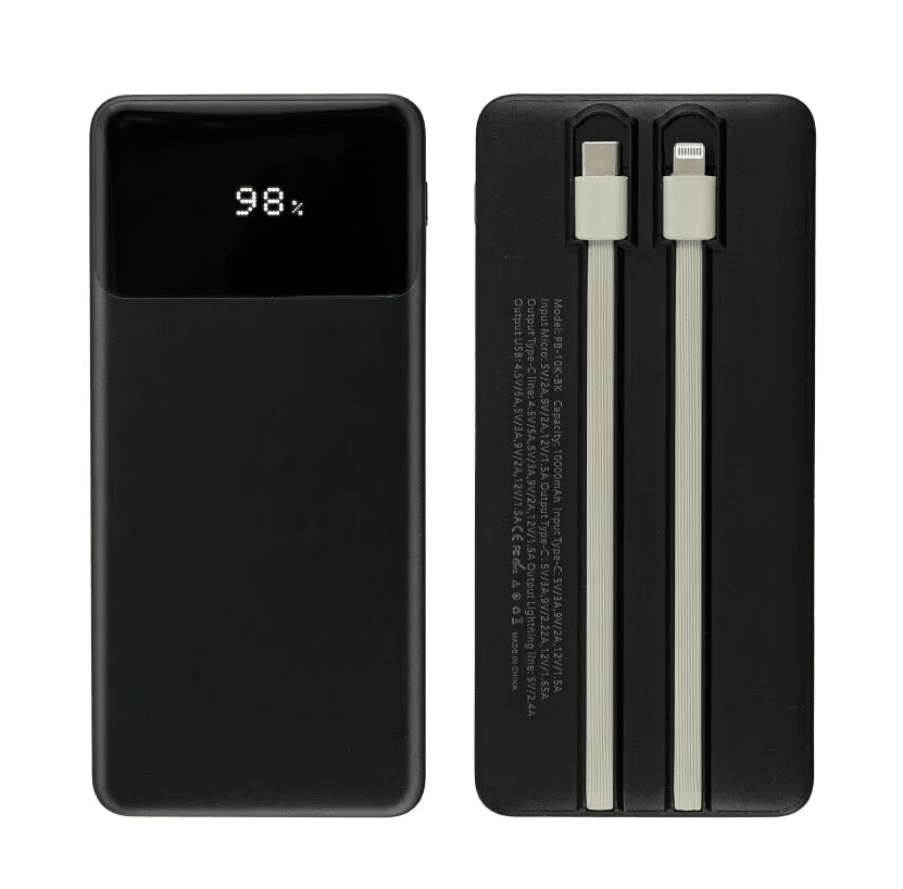 With a 10,000 mAh capacity, built-in Type C cables, and a sleek LED screen, this custom powerbank is perfect for keeping your devices charged during travel, outdoor activities, or daily commutes.
