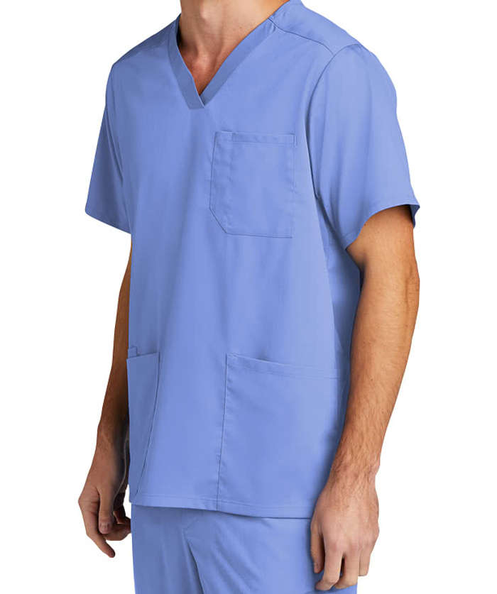 • WonderWink heat transfer logo at left chest pocket